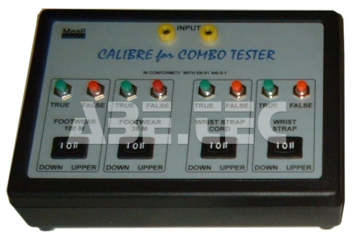 The Combo tester calibrator is a device designed to calibrate testers of protective grounding bracelets, their leads and shoes, which are used in antistatic workplaces in a reserved area according to EN 61 340-5-1. The mentioned standard prescribes a daily check of the suitability of these bracelets and shoes by a tester, which must be calibrated at least once a year.
