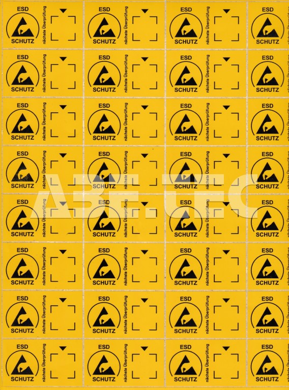 Sticker with the words ESD protection. Sheet 4 x 8 pcs, dimensions 59 x 34 mm. In German.